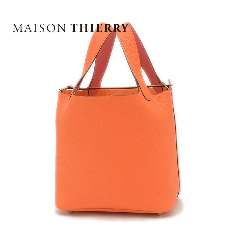 ピコタンロック PM 18 エクラ トリヨン オレンジミニアン シルバー金具 W刻印 ハンドバッグ レディース