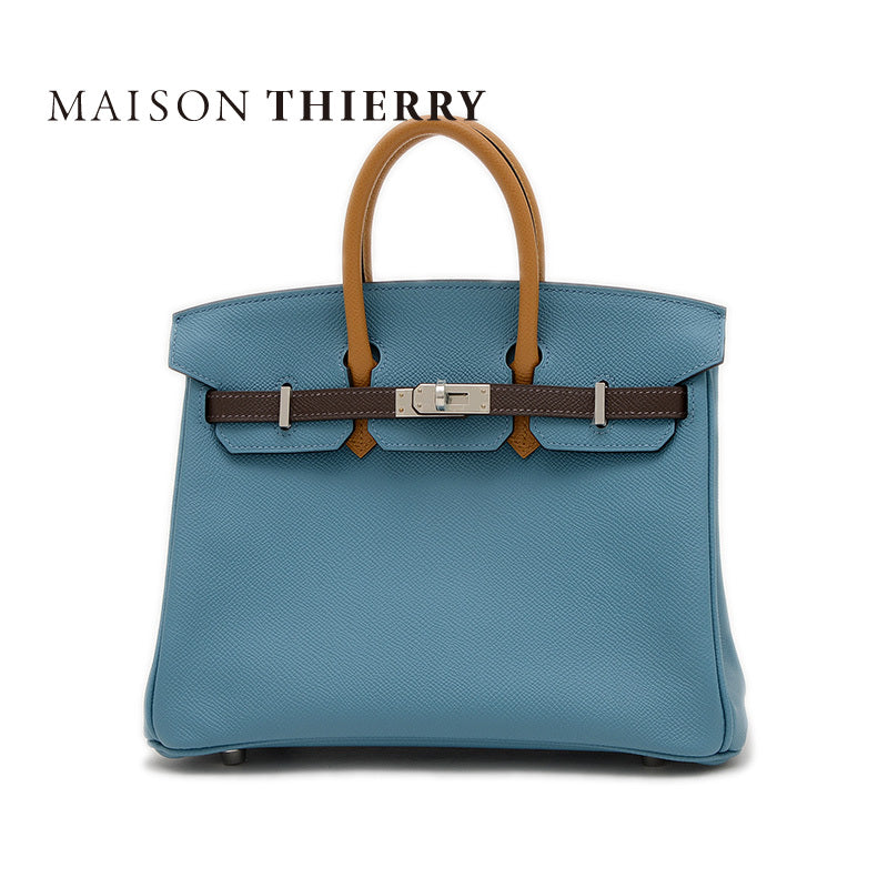 バーキン25 トリコロール エプソン ニューブルージーン/セサミ/エコルセ W刻印 ハンドバッグ レディース
