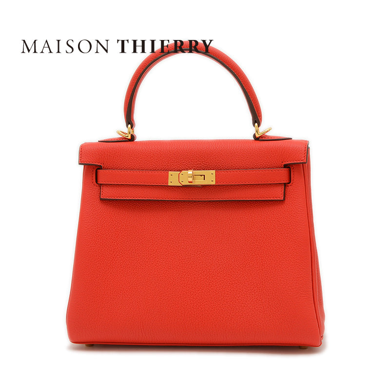 ケリー25 内縫い トゴ ルージュラデュー ゴールド金具 K刻印 ハンドバッグ レディース
