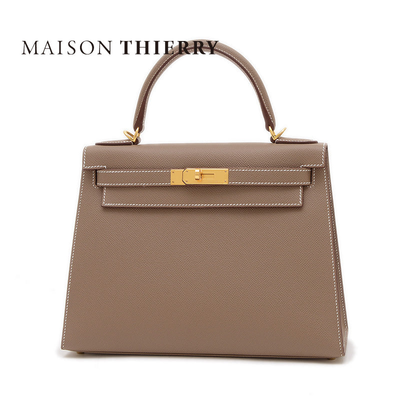 ケリー28 外縫い エプソン エトゥープ ゴールド金具 K刻印 ハンドバッグ レディース