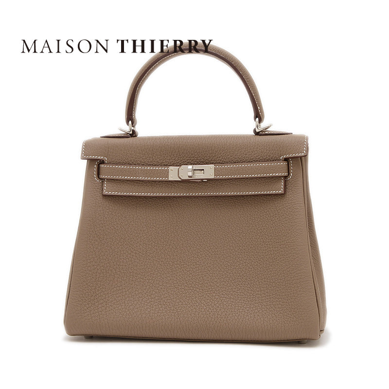 ケリー25 内縫い トゴ エトゥープ シルバー金具 W刻印 ハンドバッグ レディース