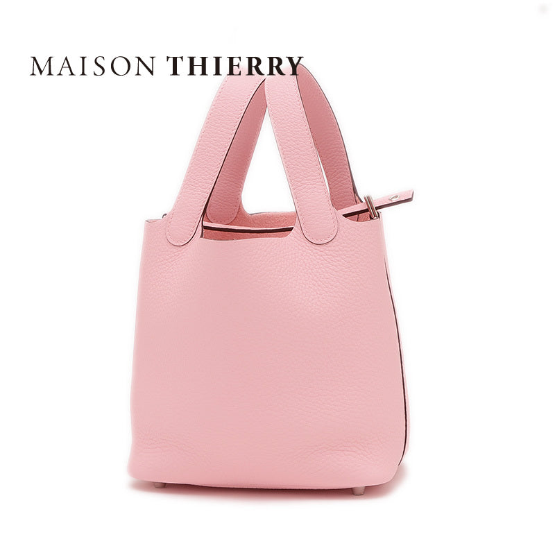 ピコタンロック PM 18 トリヨン ローズアザレ シルバー金具 W刻印 ハンドバッグ レディース