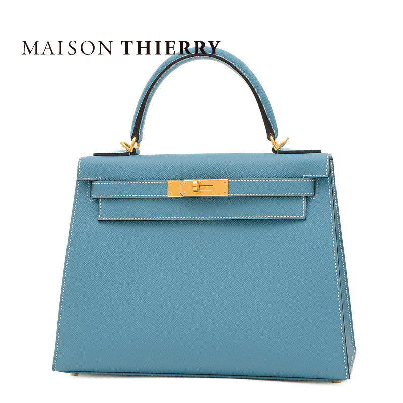 ケリー28 外縫い エプソン ニューブルージーン ゴールド金具 B刻印 ハンドバッグ レディース