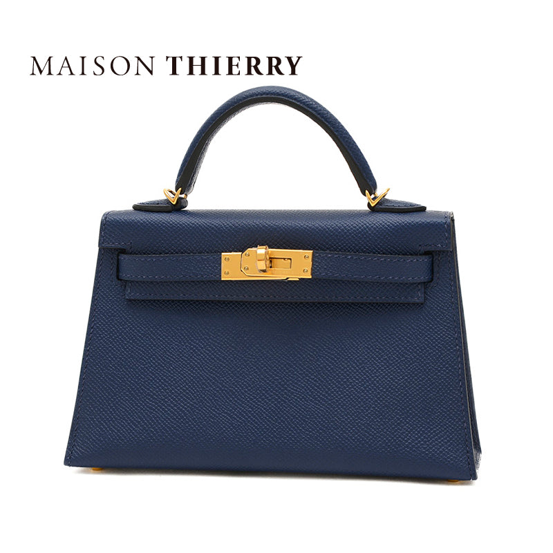 ケリー ミニ ドゥ 2 エプソン ブルーネイビー ゴールド金具 B刻印 ハンドバッグ レディース