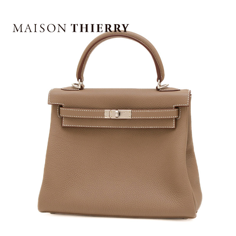 ケリー25 内縫い トゴ エトゥープ シルバー金具 B刻印 ハンドバッグ レディース