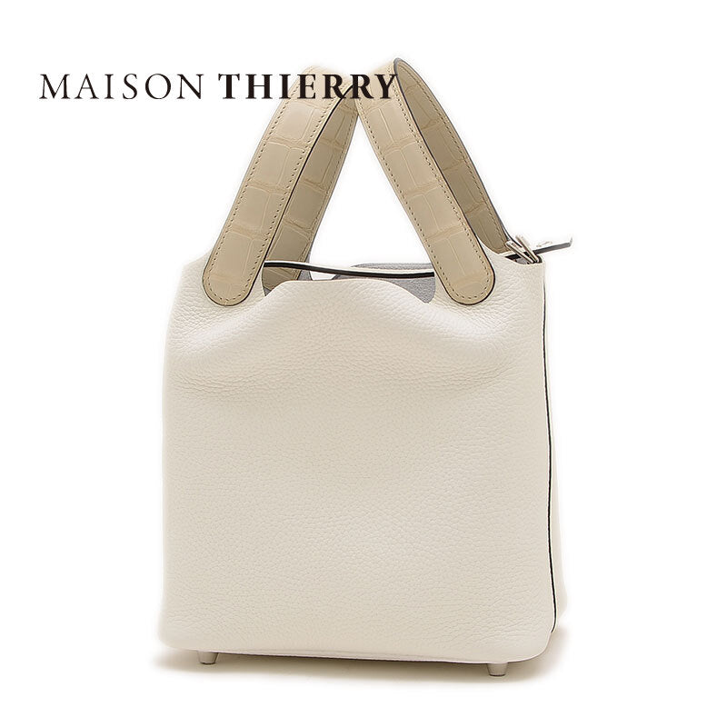 ピコタンロックPM 18 タッチ トリヨン/アリゲーター ベトン/ニューホワイト シルバー金具 W刻印 ハンドバッグ レディース