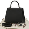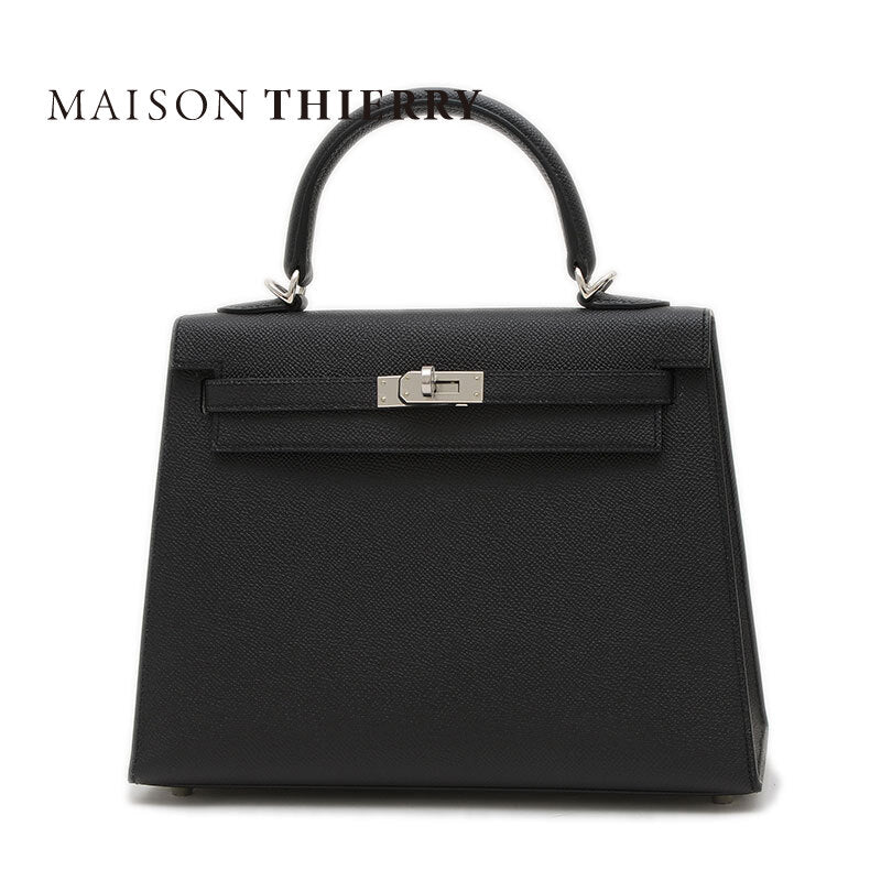 ケリー25 外縫い エプソン ブラック シルバー金具 W刻印 ハンドバッグ レディース