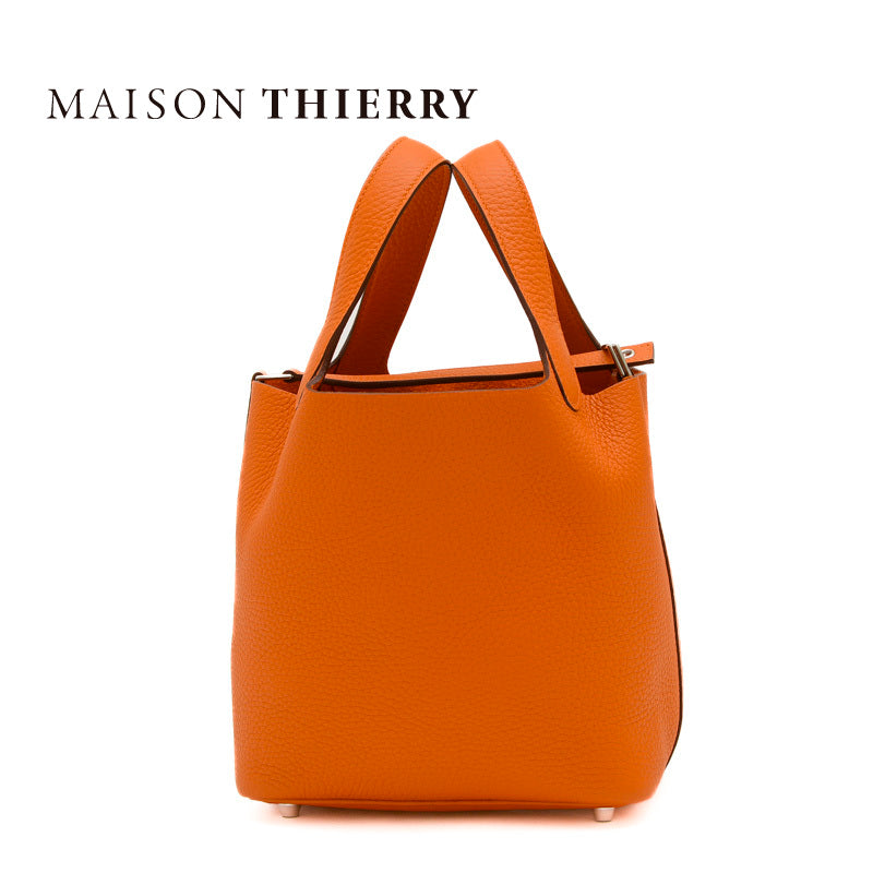 ピコタンロック PM 18 トリヨン オレンジ シルバー金具 W刻印 ハンドバッグ レディース