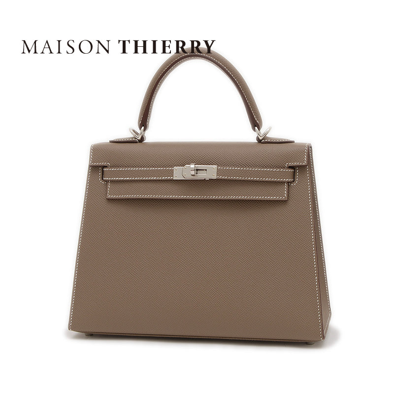 ケリー25 外縫い エプソン エトゥープ シルバー金具 W刻印 ハンドバッグ レディース