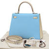 ケリー25 外縫い パーソナル エプソン セレステ/クレ シルバー金具 K刻印 ハンドバッグ レディース